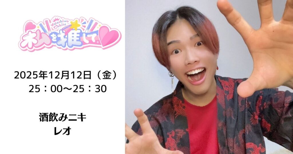 2025年12月12日(金)25時00分放送ラジオ川越_推しを探せる番組「私を推して♡」ゲスト 「レオ酒飲みニキ」