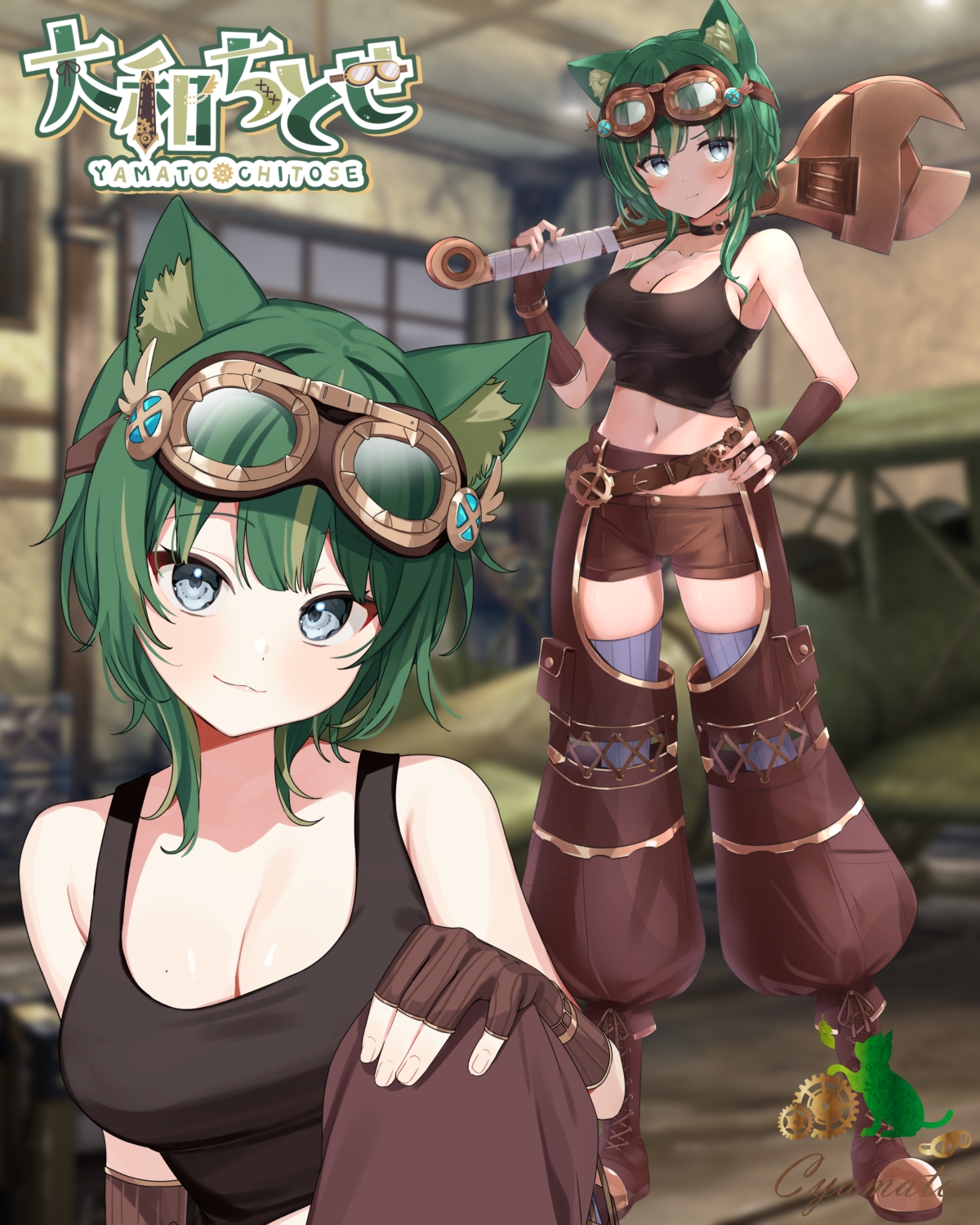 お酒と麻雀が大好きなスチームパンク系緑猫Vtuber、大和ちとせです。
